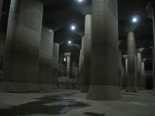 東武アーバンライン(旧東武野田線)南桜井駅からマイクロバスで「龍Q館」に向いました。「龍Q館」で模型を使って外郭放水路の仕組みなどの説明を受けました。100段の階段を降りて、世界最大の調圧水槽(通称地下神殿)を見学しました。中はひんやりし、その巨大な水槽に圧倒されました。雨水が入ってくるので泥が溜まるのではないかと疑問に思いましたが、水槽内にブルドーザーを下してたまった泥を掻き出すとのことでした。大変な作業ですね。