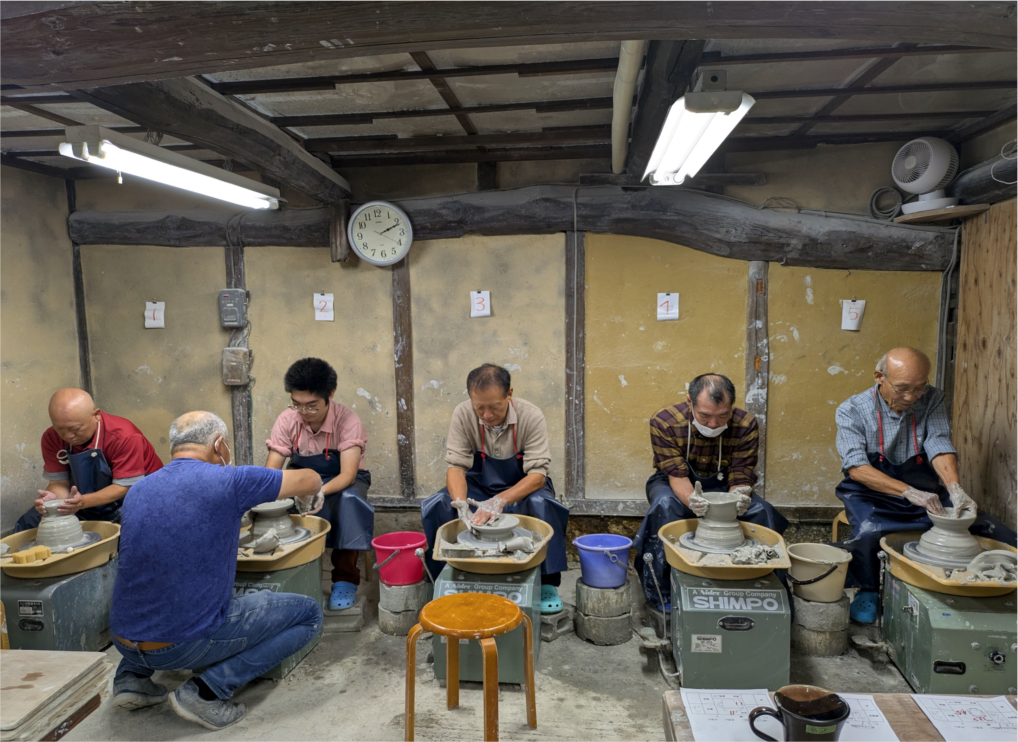 2025.11.19更新 愛知県支部企画瀬戸陶芸教室体験イベント10月26日 瀬戸市の陶芸工房のオンリーワン陶芸教室で、電動ロクロを回して、湯呑とご飯茶碗の製作です。 今回の参加は8名でした。メンバーのご家族も参加され、楽しいひと時でした。後は、乾燥、素焼きの後、それぞれ希望した色に仕上げてもらい、3ヶ月後には手元に届くようです。幹事の進藤さんが準備から色々対応していただきました。 電動ロクロでの製作 参加した8名