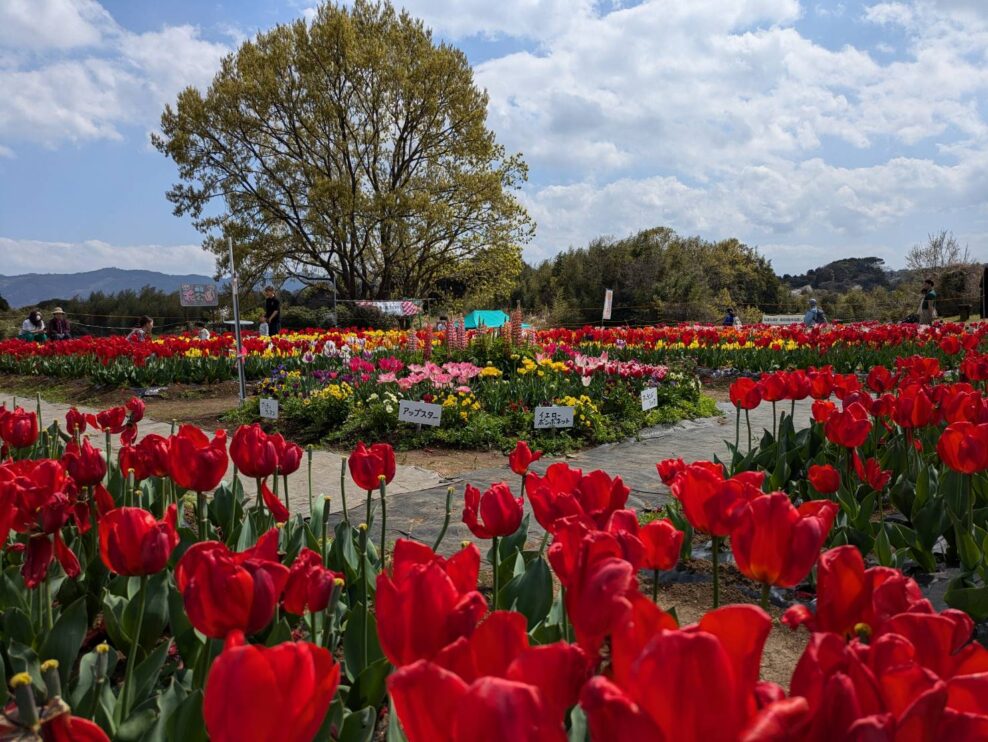 大分県支部会員の木津幸次さん所属のNPO法人『岡原花咲かそう会』の おかばる花公園(大分市)にて見頃のチュ-リップや咲き始めたネモフィラ畑の散策と昼食会を楽しみました。